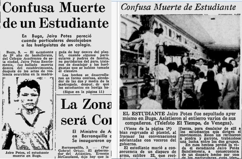 Al otro día, cinco de la mañana, me dirigí al colegio tal como se había acordado la noche anterior, para ir en comisión a Buga, dar información y conseguir apoyo. Éramos cuatro: Paco Rengifo, Stella, Nora y mi persona. Stella era rubia, alta, blanca de ojos azules. Nora era trigueña, mediana estatura, ambas muy bonitas. El problema del Instituto Julia Restrepo era el mismo de todos los colegios oficiales de la época, tiranía, mal trato, baja calidad educativa, corrupción, falta de cupos, entre otros males. Pedían la destitución de la rectora Dioselina y otras profesoras. A eso de las siete de la mañana llegamos a Buga a la casa de Paco ubicada en la carrera 8 con calle 20, cerca del coliseo de ferias. Era una casa sencilla que conservaba las características de las casas veredales. Su madre y hermana nos atendieron bien, desayunamos y luego nos dirigimos al colegio Académico, pasando por todos los salones para invitar a los estudiantes a una reunión inmediata en el parque Cabal. Asistieron aproximadamente 100 compañeros, principalmente de los cursos inferiores, primero, segundo y tercero de bachillerato, y algunos de cuarto como Eduardo Martínez. Muchos de ellos eran amigos de la gallada del parque del cementerio como chiva y Jairo Potes, quien tenía un equipo de futbol en tercera división llamado "Cúcuta deportivo" y me había invitado a jugar en su equipo. Era un centro delantero fuerte y goleador, echado para adelante, no le valían ni las zancadillas, ni las patadas. En varias oportunidades nos habíamos enfrentado.