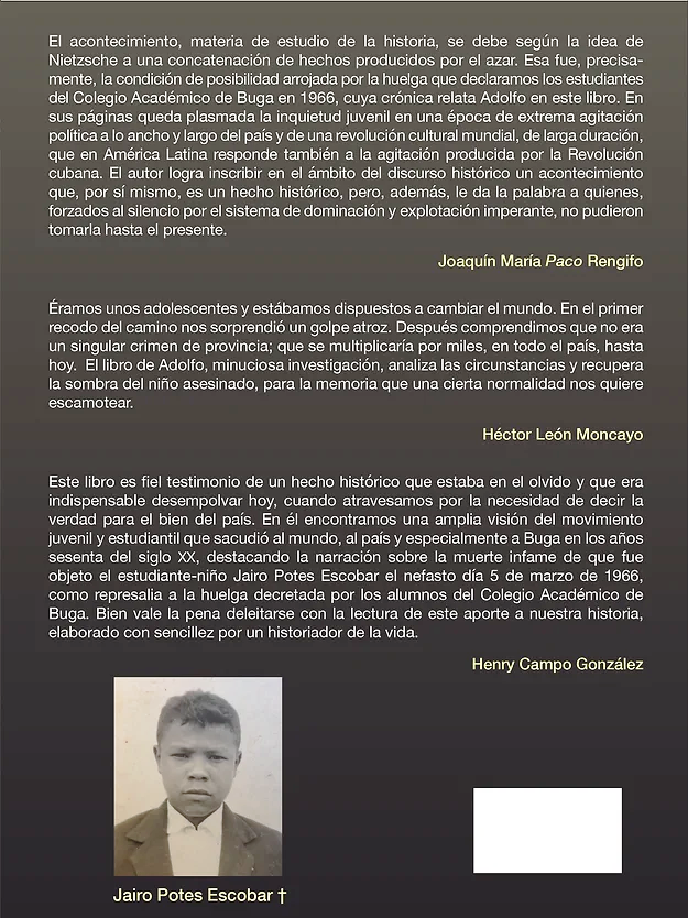 Yo no le encontraba sentido al estudio, tal vez por la situación familiar y el profesorado, y no sabía qué hacer. Los profesores eran tiranos y menospreciaban a los alumnos. Una tarde, el profesor de español, de apellido Guarín, de baja estatura, se burlaba de Guambia, haciéndole repetir la palabra "ómnibus" que no podía pronunciar correctamente. De pronto escuche un murmullo de voces que llamaban a todos los estudiantes a bajar al patio de formación para escuchar al compañero Paco Rengifo, repitente del sexto grado. Me escape de la clase para escuchar lo que decía, en tono filosófico y convincente, que las compañeras del colegio femenino "Instituto Julia Restrepo" de la ciudad de Tuluá, vecina de Buga, distante a 15 minutos en carro, estaban adelantando una huelga desde hace varios días, habiéndose tomado las instalaciones del colegio, y se encontraban siendo amenazadas por la policía de ingresar a la fuerza para sacarlas de allí. Solicitaban el apoyo de todo el estudiantado de la región.